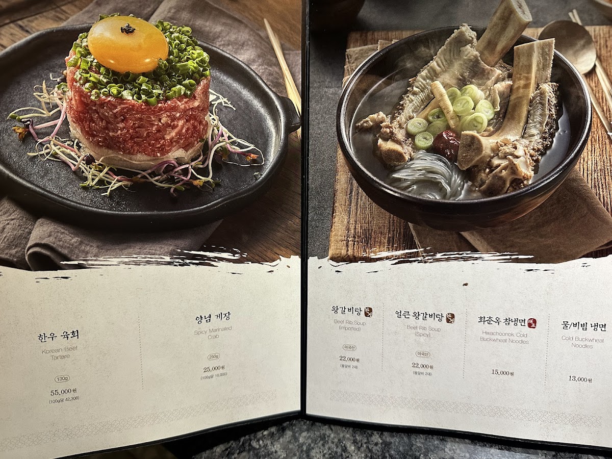 Guests often enjoy dishes like 숯불갈비 (charcoal-grilled ribs) and the rich Beef Rib Soup during dinner, where the warm atmosphere invites slow, shared dining. Lighter options such as the Korean Beef Tartare Bibimbap and crisp, refreshing Hwachoonok Cold Buckwheat Noodles offer a comforting yet revitalizing choice for midday meals or those looking for something less indulgent.