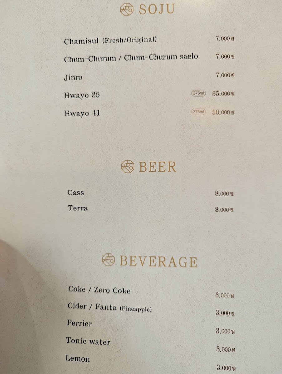 Hwachoonok Menu